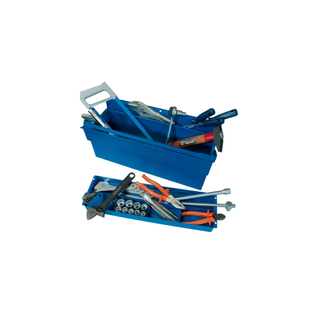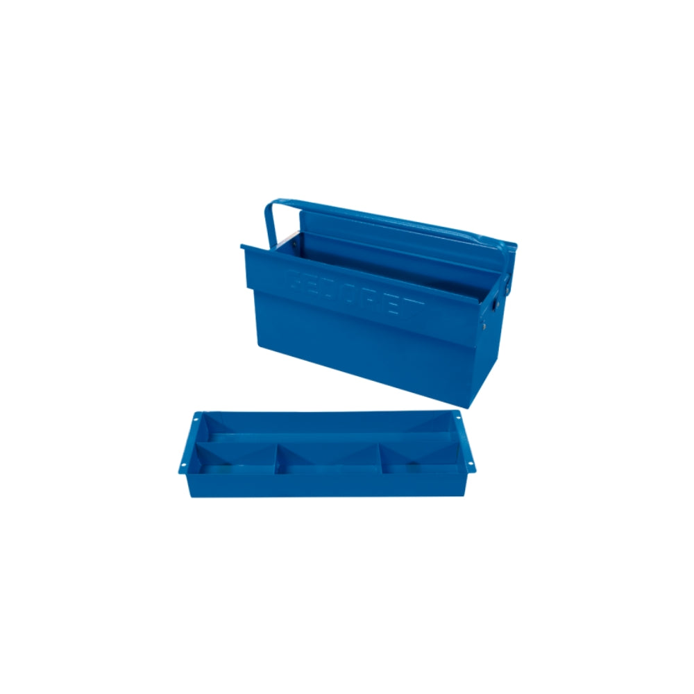 Fabricado en chapa de acero especial reforzada de 0,6 mm de espesor. Acabado con pintura azul Gedore estándar. Caja robusta y soldada. La caja 1340 cuenta con un orificio de 8,3 mm de diámetro para candado (no incluido). Bandeja con separadores fijos. Ideal para guardar herramientas de mantenimiento de vehículos, maquinaria y otras aplicaciones. Se suministra con o sin herramientas.