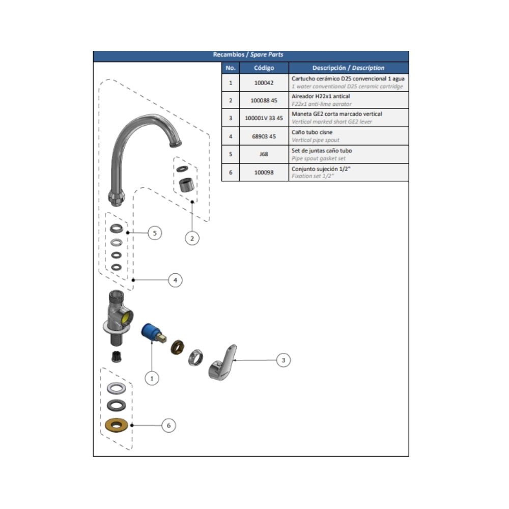 1) Cuerpo y placa realizados en latón según UNE-EN 1982.