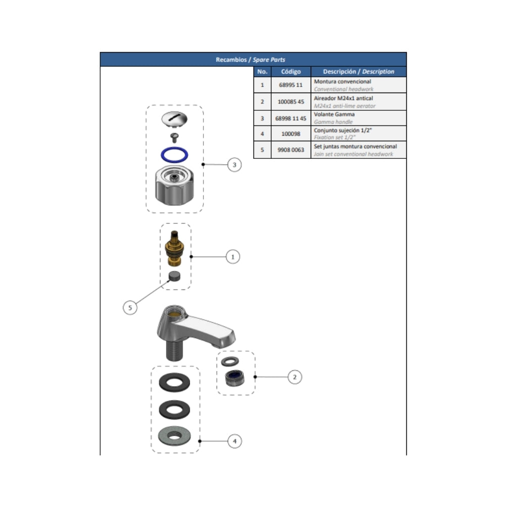 5) Aireador plástico antical M24x1 con carcasa de latón cromado.