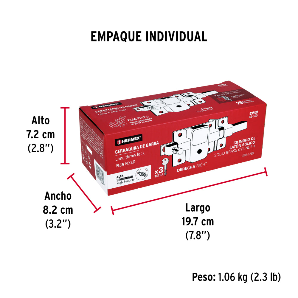 • Cilindro de latón sólido con 6 pernos para mayor