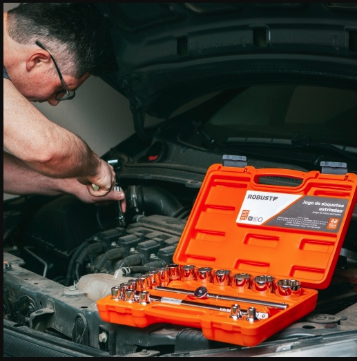 El juego de vasos que siempre está ahí para ti, en cualquier situación! El juego "22 piezas" es compacto y práctico de la línea Robust, que reúne los vasos y accesorios más utilizados para mecánica general, mantenimiento y reparaciones. Es versátil. Es compacto. Es esencial.