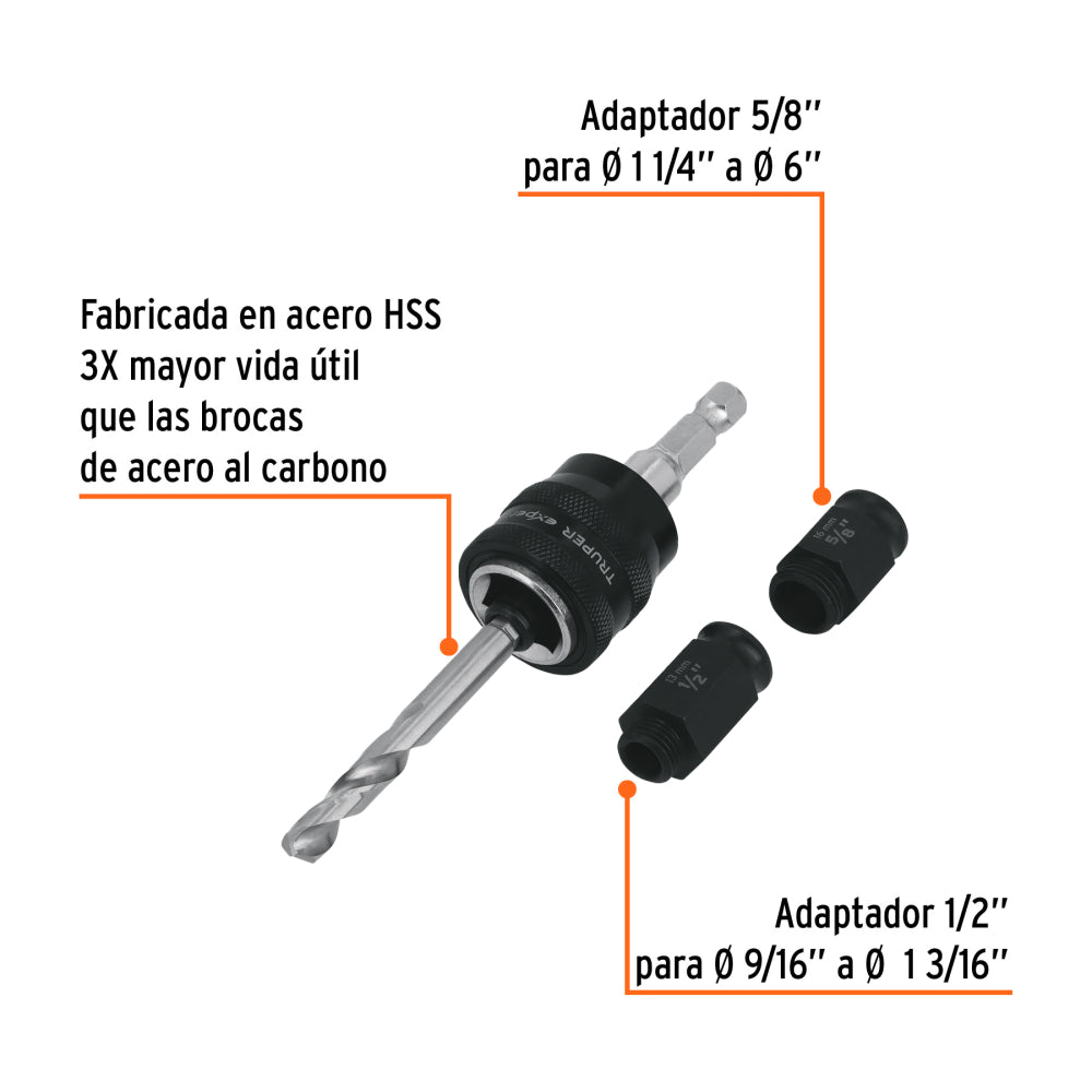 • Broca fabricada en acero HSS, 3X mayor vida útil que
