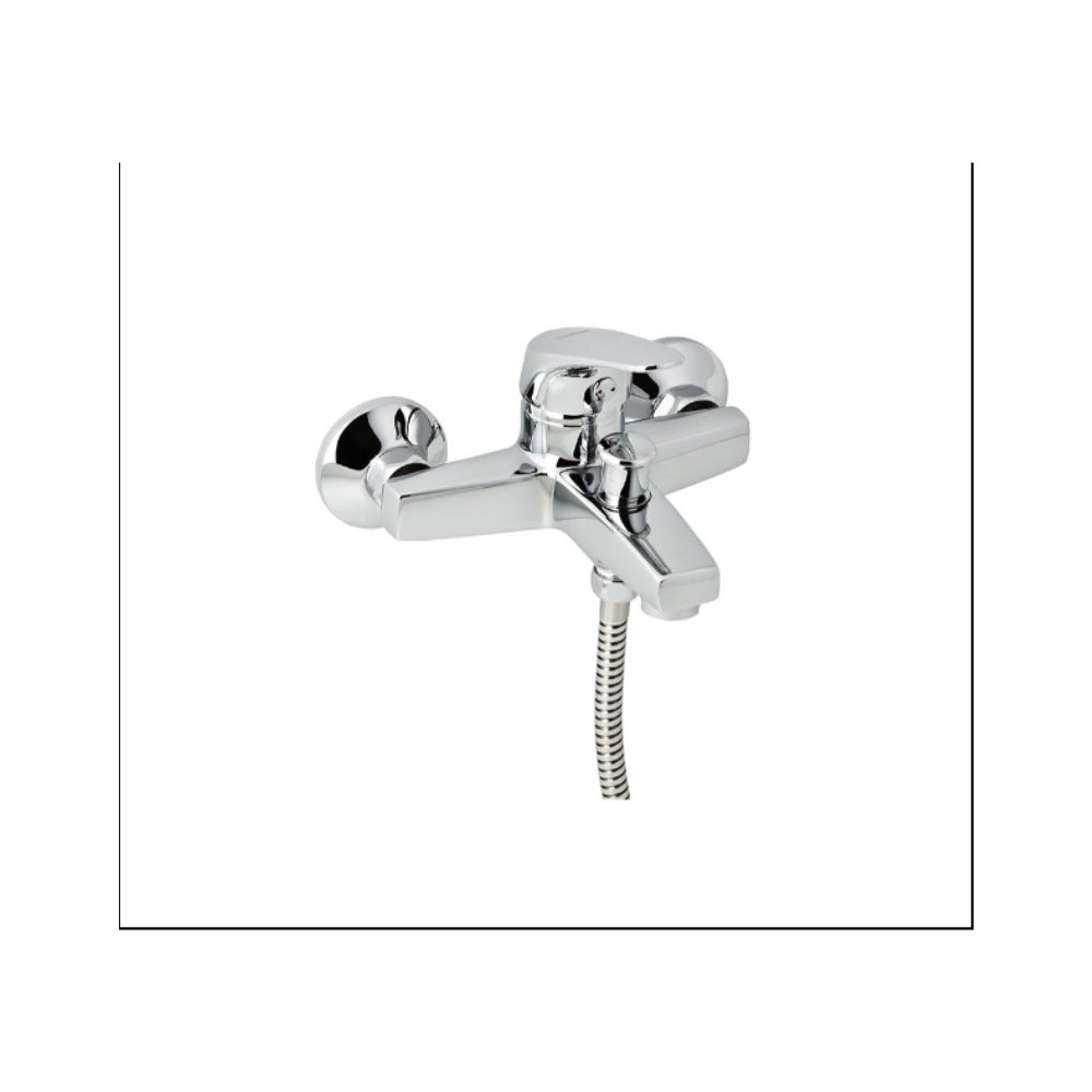 7) Suministrado con flexo ducha de Inoxidable (170 cm), mango de ducha, soporte y excéntricas de latón para fijación.