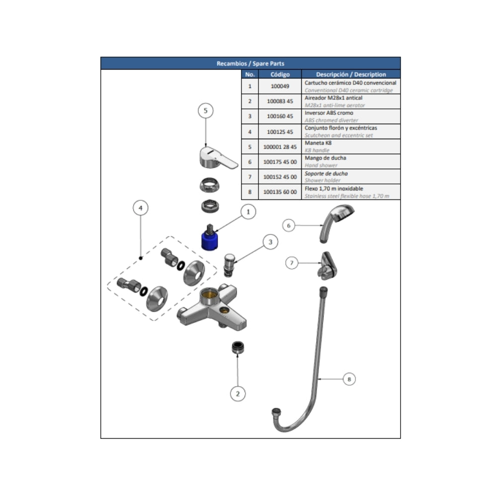 MONOCOMANDO P/ BAÑO-DUCHA/BAÑERA CON KIT K8
