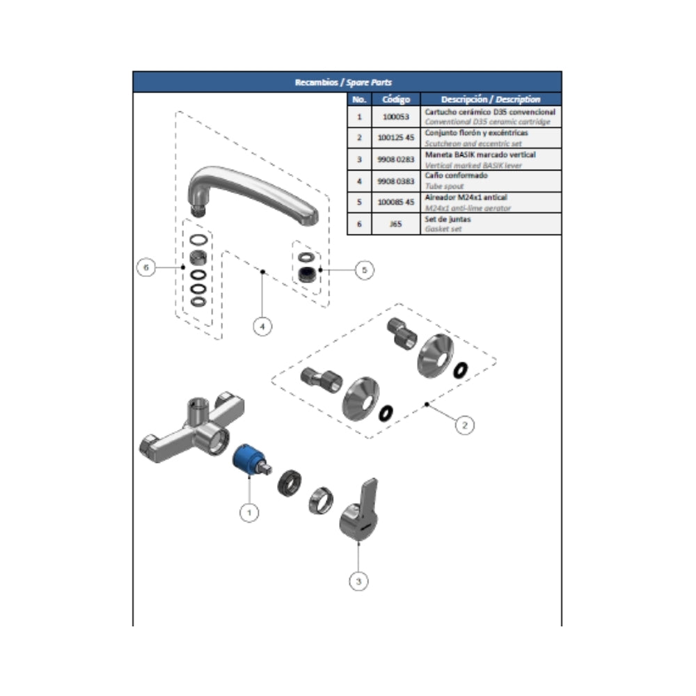 4) Cartucho cerámico silencioso D35 con salida dirigida.