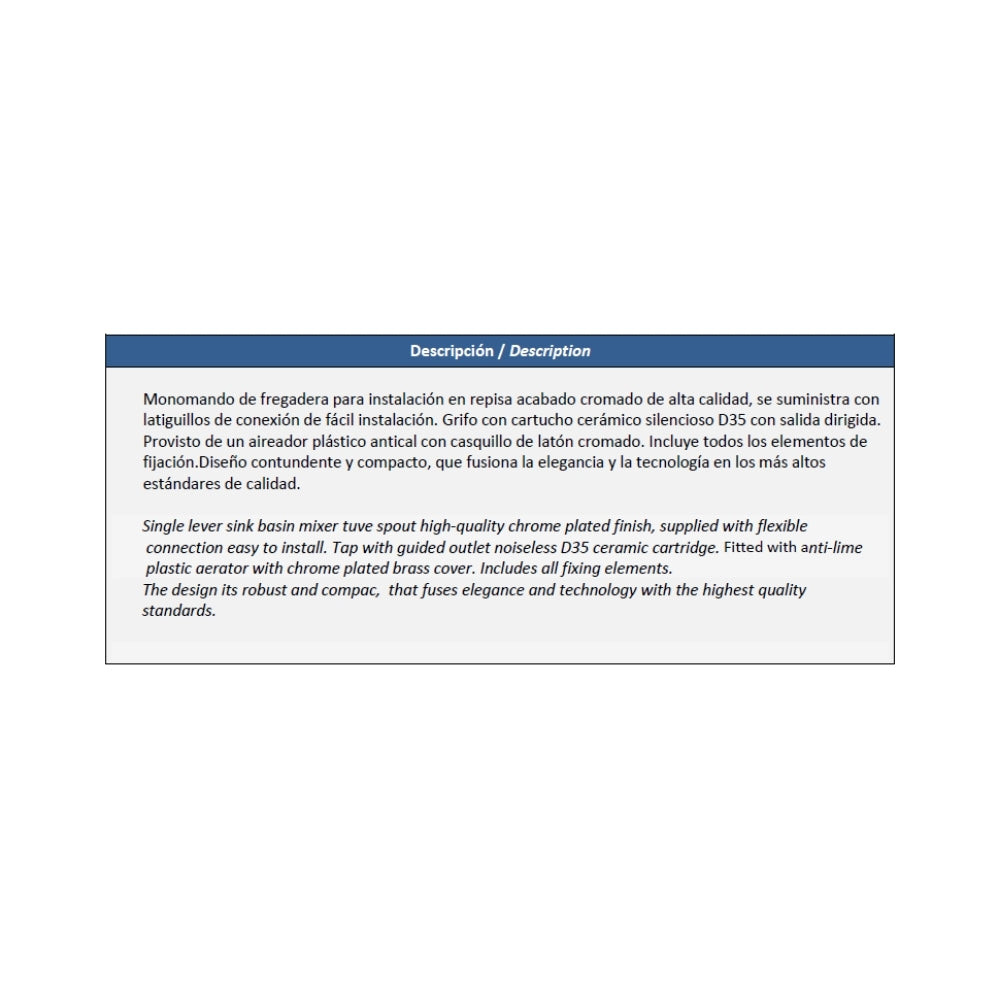 6) Suministrado con latiguillos de 35 cm 10x1 H 3/8" y conjunto de sujeción mediante herradura de inoxidable.