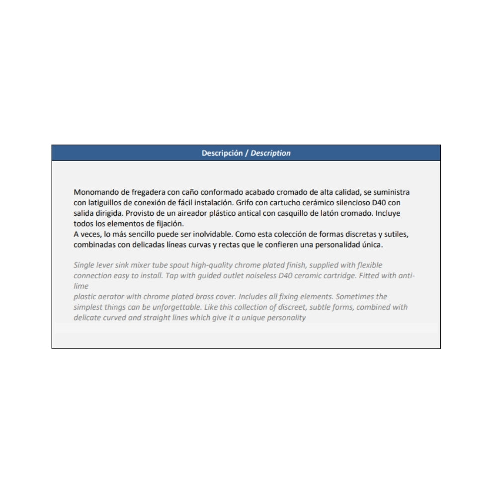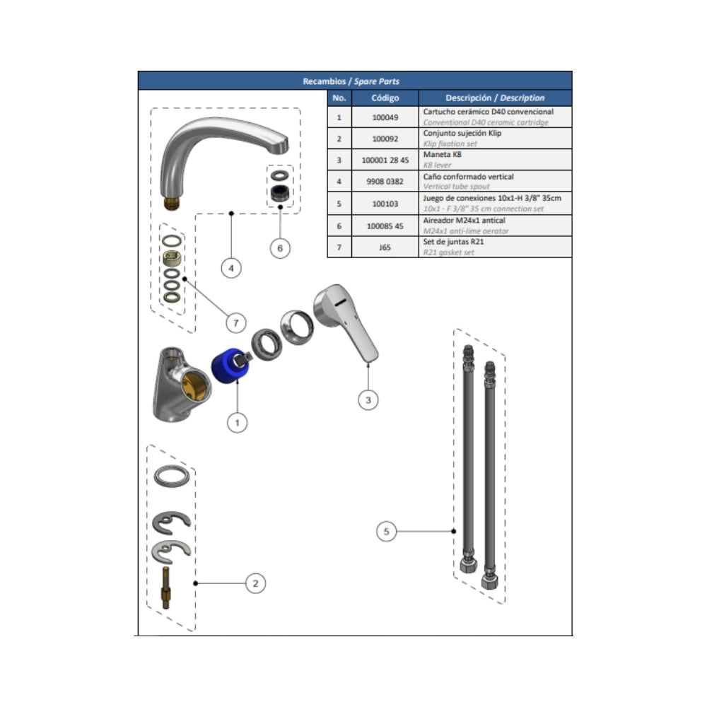6) Suministrado con latiguillos de 35 cm 10x1 H 3/8" y conjunto de sujeción mediante herradura de inoxidable.
