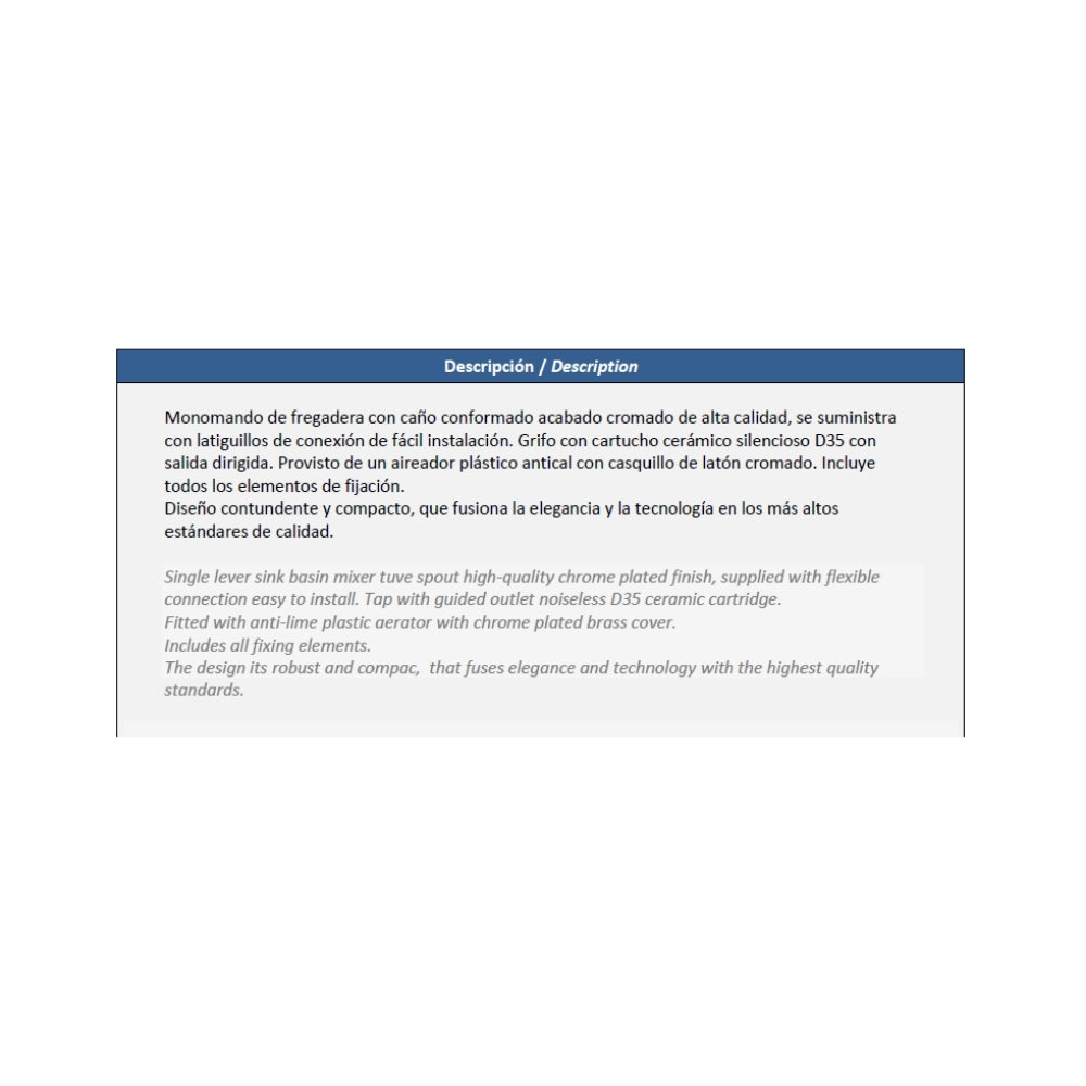 5) Suministrado con latiguillos de 35 cm 10x1 H 3/8" y conjunto de sujeción mediante herradura de inoxidable.