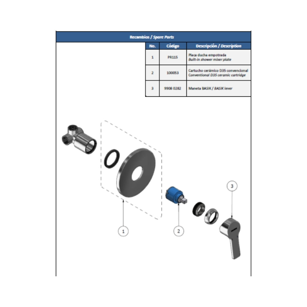 4) Cartucho cerámico silencioso D35 con salida dirigida.