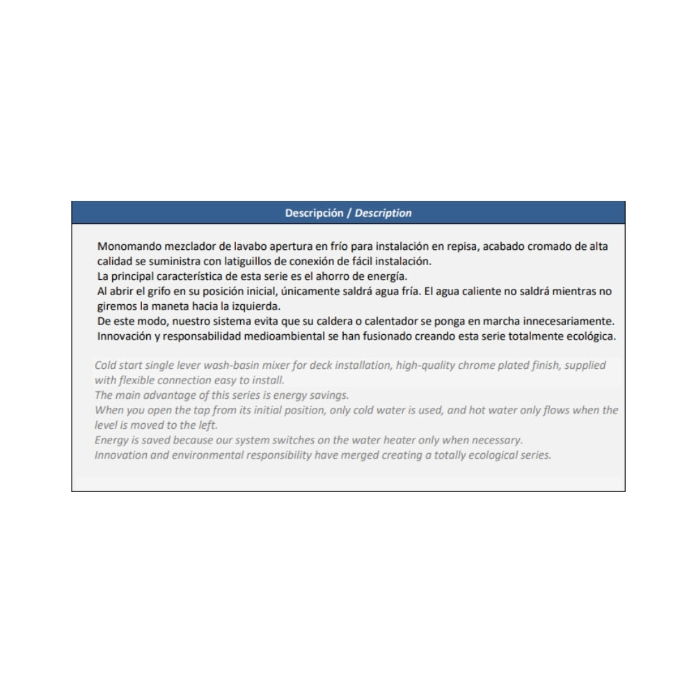 6) Suministrado con porta cadenas, latiguillos de 40 cm 10x1 H 3/8" y conjunto de sujeción mediante herradura inoxidable.