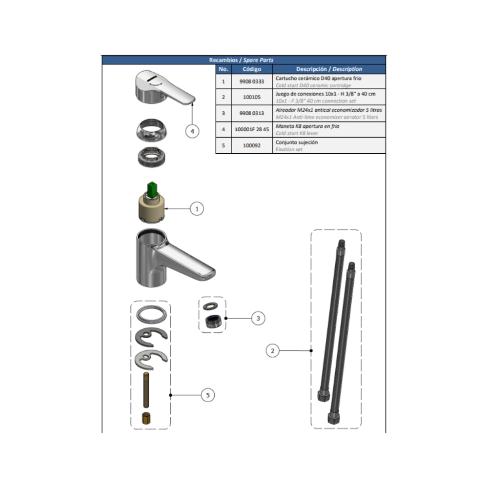 4) Cartucho cerámico D40 apertura frio.