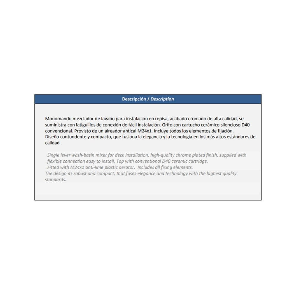 6) Suministrado con portacadenas, latiguillos de 40 cm 10x1 H 3/8" y conjunto de sujeción mediante herradura inoxidable.