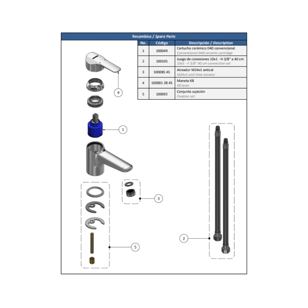 4) Cartucho cerámico silencioso Ø40 con salida dirigida.