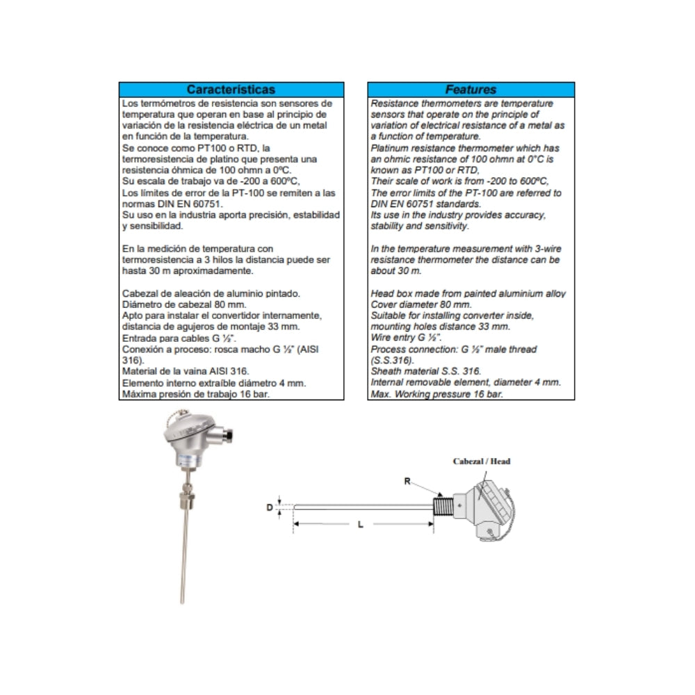 Elemento extraíble encamisado.Cabezal DIN BR roscado. PN 16.