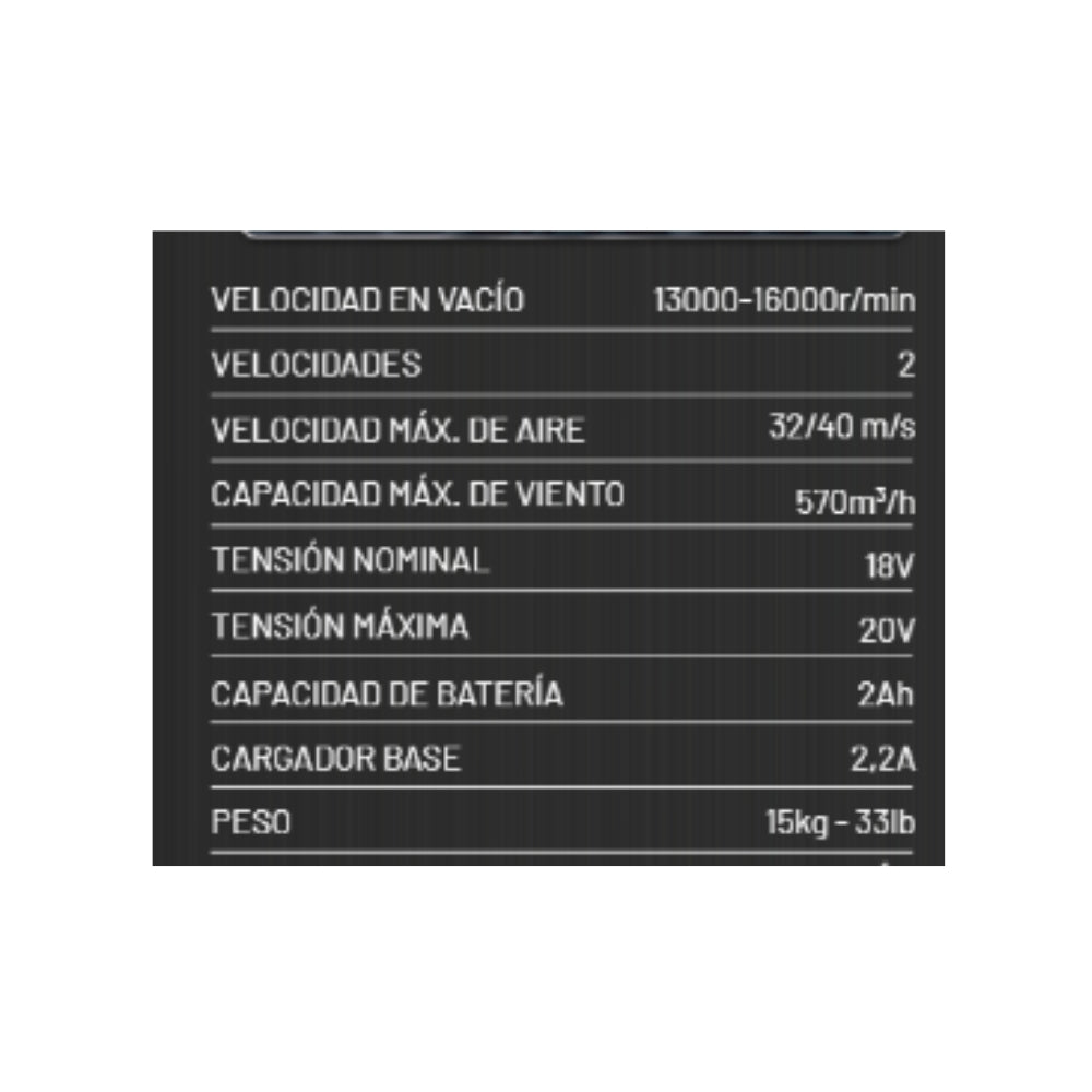 El soplador inalámbrico de 20V con 2 velocidades es una herramienta compacta y ligera, ideal para tareas de limpieza rápidas y eficientes en talleres, garajes y jardines pequeños, sin depender de cables.
