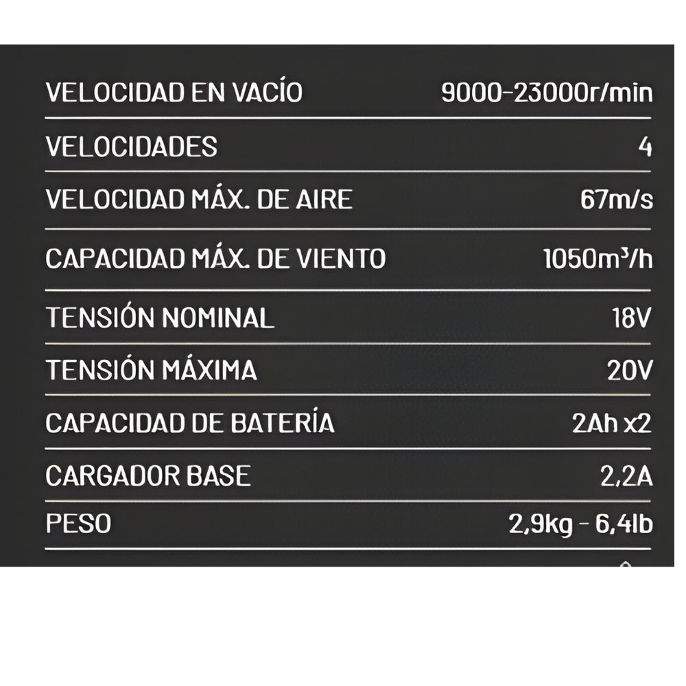 El soplador inalámbrico de 40V con 2 velocidades es una herramienta potente diseñada para la limpieza eficiente de jardines y áreas exteriores sin la limitación de cables o combustible. Al ser solo la máquina, no incluye batería ni cargador.