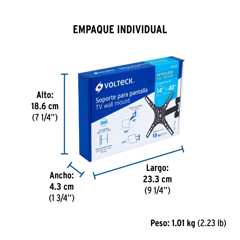 Empaque Individual Medidas: Alto: 18.6 cm (7 1/4") Ancho: 4.3 cm (1 3/4") Largo: 23.3 cm (9 1/4") Peso: 1.01 kg