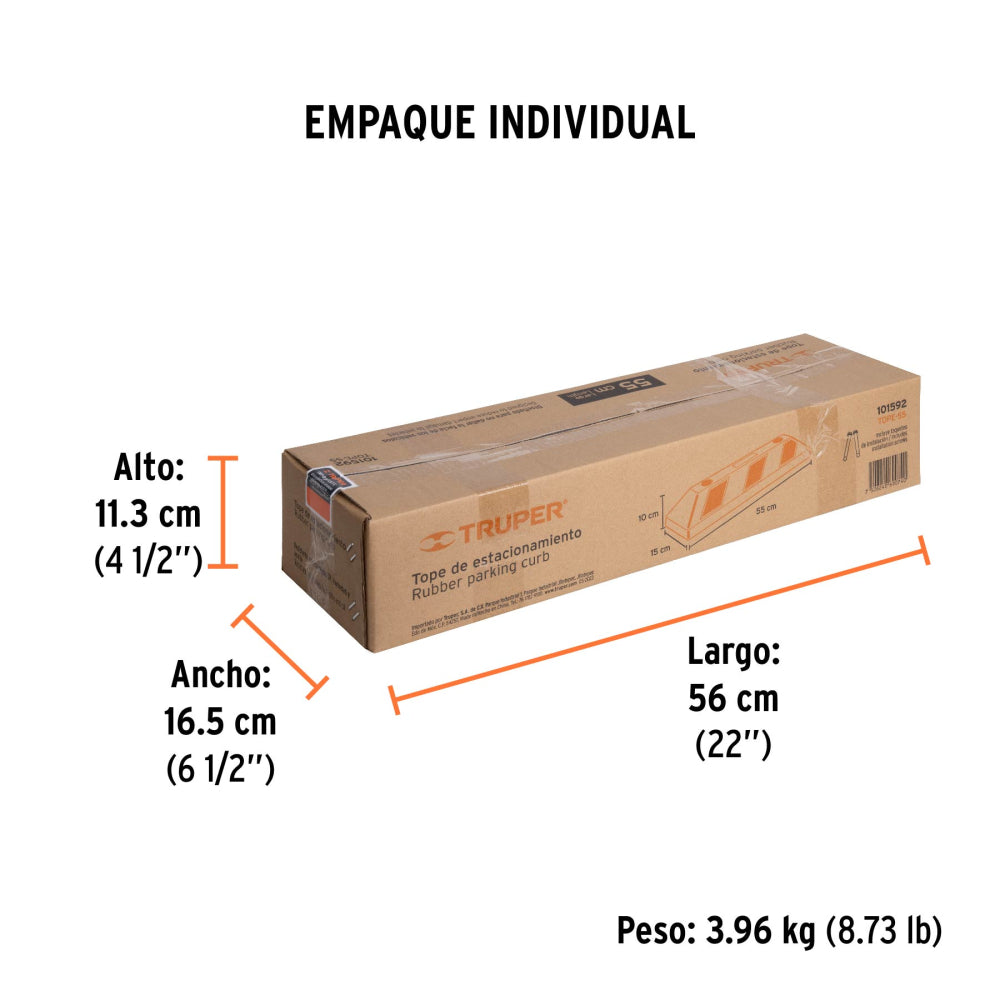 Empaque Individual Medidas: Alto: 11.3 cm (4 1/2") Ancho: 16.5 cm (6 1/2") Largo: 56 cm (22") Peso: 3.96 kg
