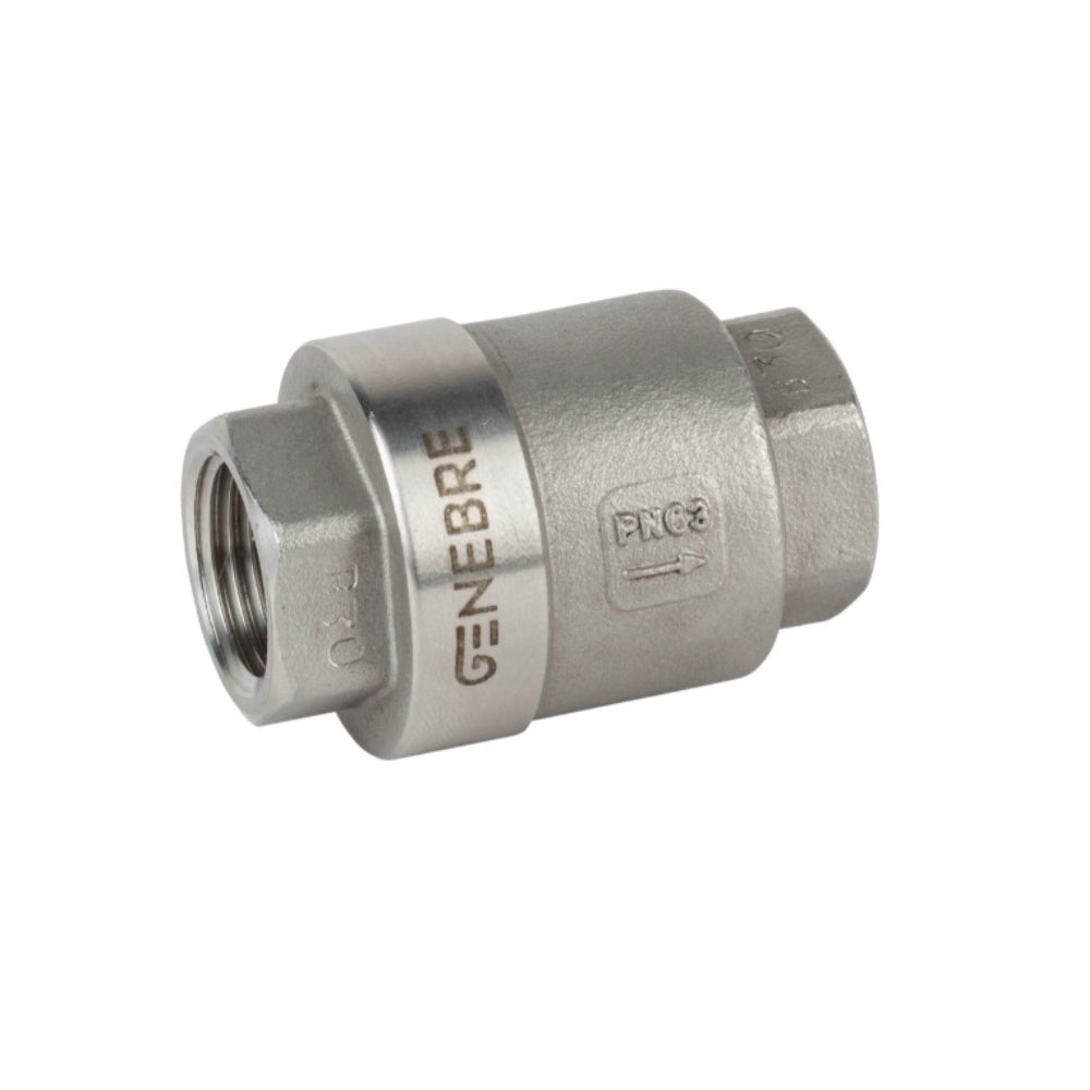 Construcción: acero inox. CF8M (316) microfusión. Extremos: rosca gas ISO 7-1 (EN 10226-1). Disco y resorte: AISI 316. PN 63, temp: -20ºC +240ºC.