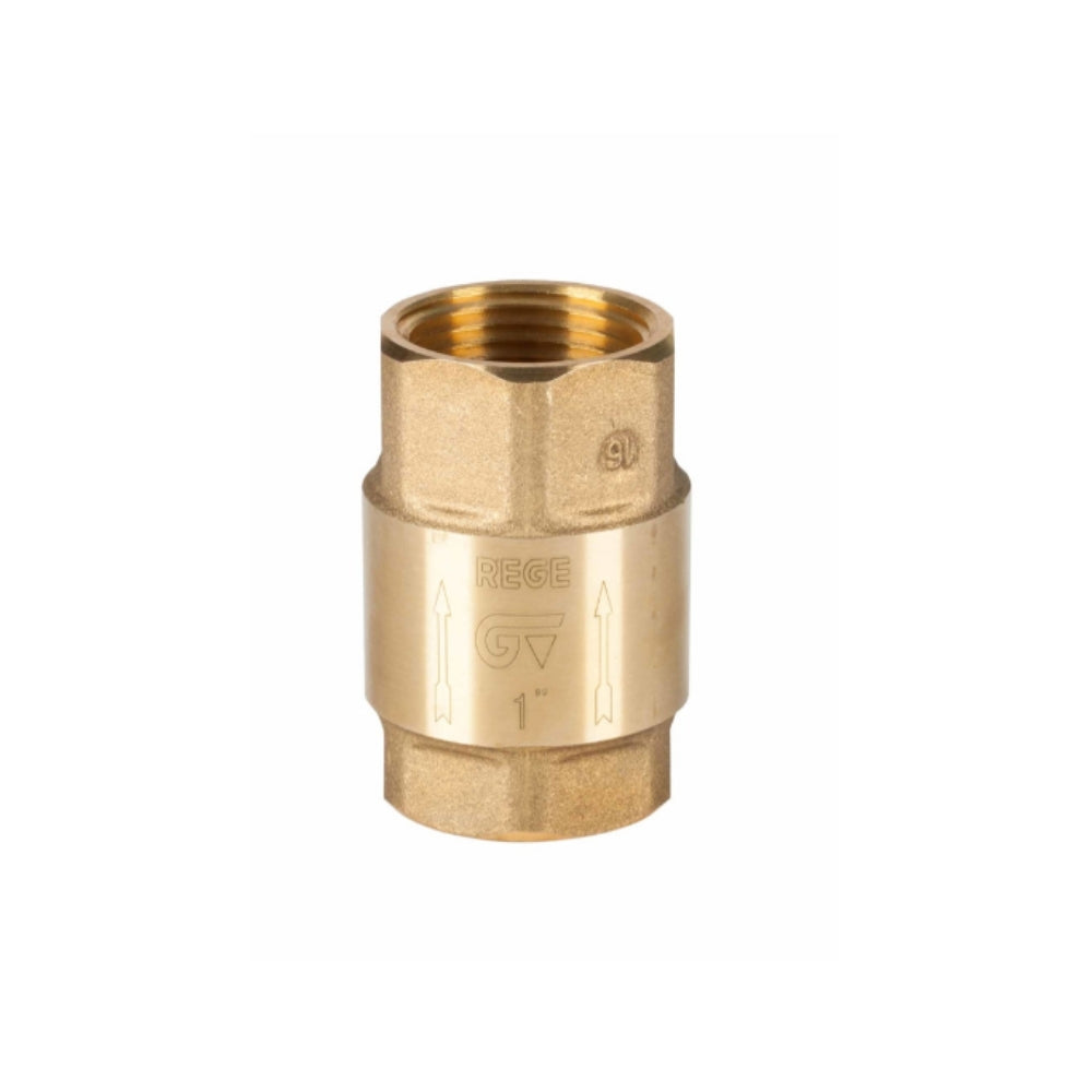 PN 25/12. Construcción en latón UNE-EN 12165. Junta de clapeta vulcanizada de NBR. Muelle en acero inox. AISI 304. Extremos rosca gas (BSP) H-H - ISO 228/1. Temp. máx. 90ºC. Montaje en cualquier posición.